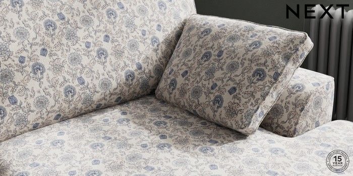 7.3.1 Buy Stamford Large Sofa Chaise - Right Hand Relaxed Linen Look Print Woodblock Floral Blue Large Square Angle - Mid from the Next UK online shop Click here to use our accessible website