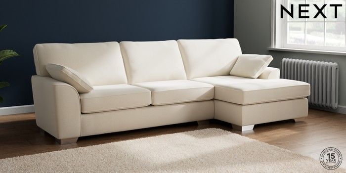 6.12.1 Buy Stamford Large Sofa Chaise - Right Hand Ripple Chenille Oyster Large Square Angle - Chrome Metal from the Next UK online shop Click here to use our accessible website