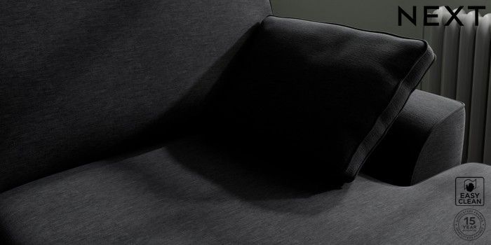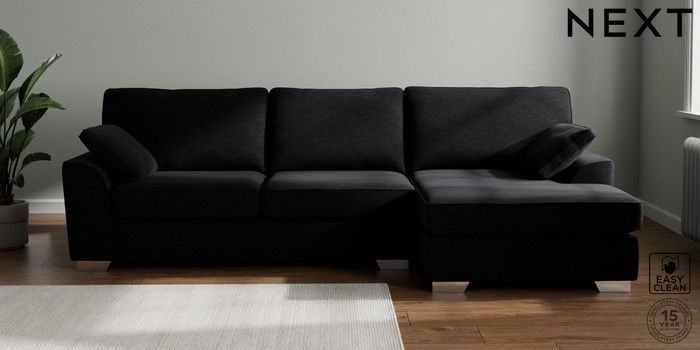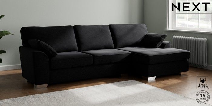 7.2.6 Buy Stamford Large Sofa Chaise - Right Hand Fine Chenille Easy Clean Black Large Square Angle - Chrome Metal from the Next UK online shop Click here to use our accessible website