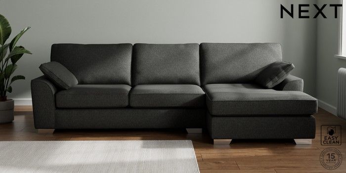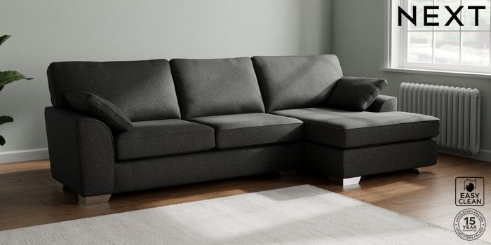 7.3.1 Buy Stamford Large Sofa Chaise - Right Hand Tweedy Blend Easy Clean Charcoal Grey Large Square Angle - Chrome Metal from the Next UK online shop Click here to use our accessible website