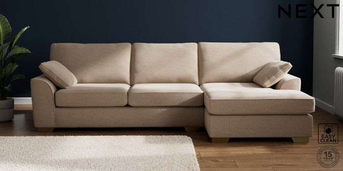 7.3.1 Buy Stamford Large Sofa Chaise - Right Hand Tweedy Blend Easy Clean Light Dove Natural Large Square Angle - Brushed Brass from the Next UK online shop Click here to use our accessible website