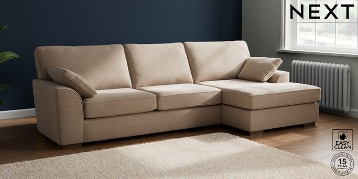 7.2.10 Buy Stamford Large Sofa Chaise - Right Hand Tweedy Blend Easy Clean Light Dove Natural Large Square Angle - Mid from the Next UK online shop Click here to use our accessible website