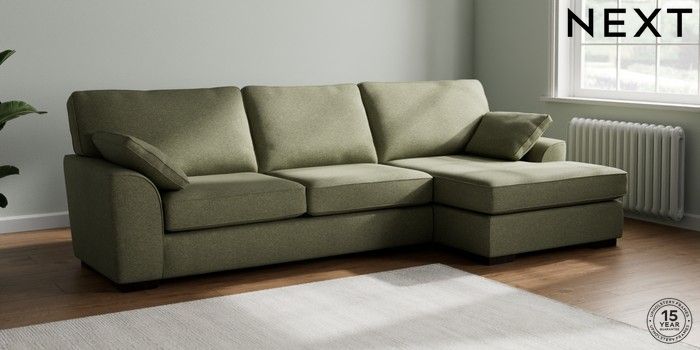 6.12.1 Buy Stamford Large Sofa Chaise - Right Hand Tweedy Chenille Mid Moss Green Large Square Angle - Dark from the Next UK online shop Click here to use our accessible website