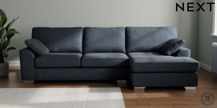 7.3.1 Buy Stamford Large Sofa Chaise - Right Hand Tweedy Chenille Navy Blue Large Square Angle - Chrome Metal from the Next UK online shop Click here to use our accessible website