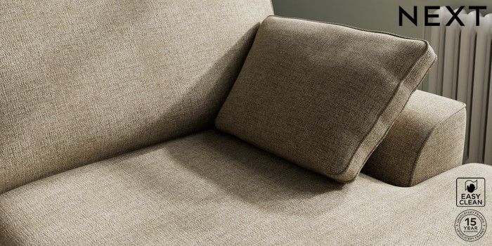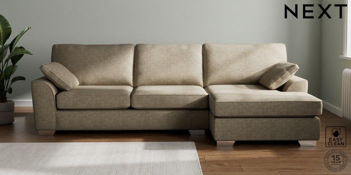 7.3.1 Buy Stamford Large Sofa Chaise - Right Hand Woven Chenille Easy Clean Mid Natural Large Square Angle - Chrome Metal from the Next UK online shop Click here to use our accessible website