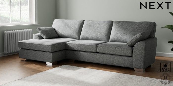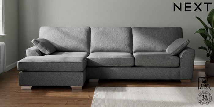 7.3.1 Buy Stamford Large Sofa Chaise - Left Hand Chunky Boucle Easy Clean Mid Grey Large Square Angle - Chrome Metal from the Next UK online shop Click here to use our accessible website