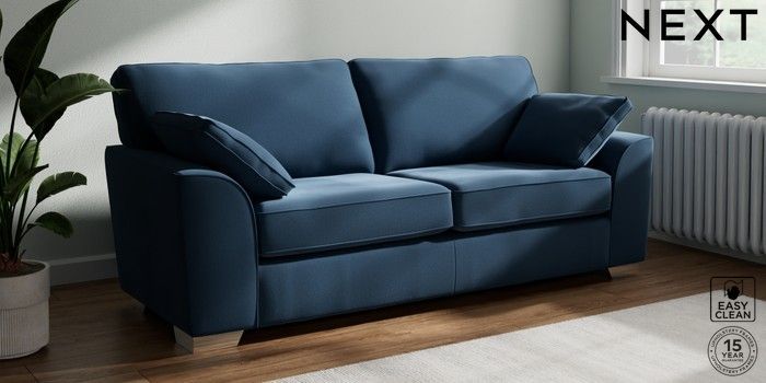 7.2.6 Buy Stamford 3 Seater Sofa Plush Velvet Easy Clean Airforce Blue Large Square Angle - Chrome Metal from the Next UK online shop Click here to use our accessible website