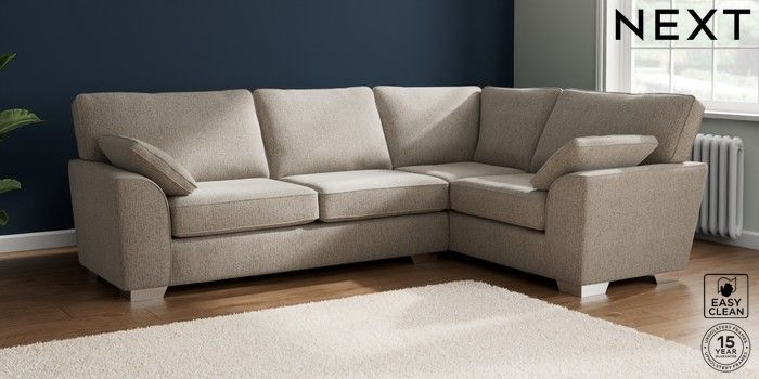 7.2.10 Buy Stamford Large Corner Sofa - Right Hand Chunky Boucle Easy Clean Dove Large Square Angle - Chrome Metal from the Next UK online shop Click here to use our accessible website