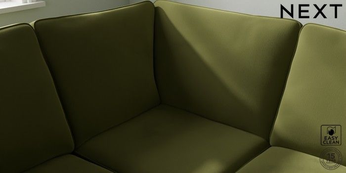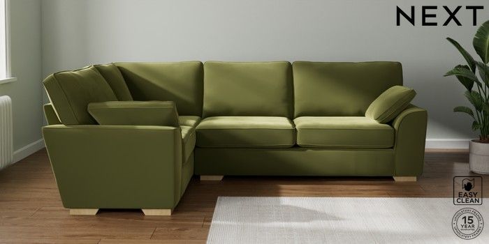 7.2.6 Buy Stamford Large Corner Sofa - Left Hand Plush Velvet Easy Clean Mid Olive Green Large Square Angle - Light from the Next UK online shop Click here to use our accessible website