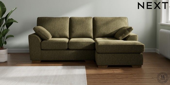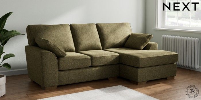 7.2.10 Buy Stamford Small Sofa Chaise - Right Hand Cotswold Chenille Dark Green Large Square Angle - Mid from the Next UK online shop Click here to use our accessible website