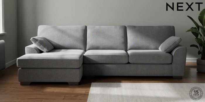 7.2.6 Buy Stamford Large Sofa Chaise - Left Hand Chunky Marl Mid Grey Large Square Angle - Gunmetal from the Next UK online shop Click here to use our accessible website