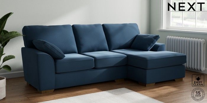 7.2.6 Buy Stamford Medium Sofa Chaise - Right Hand Plush Velvet Easy Clean Airforce Blue Large Square Angle - Mid from the Next UK online shop Click here to use our accessible website