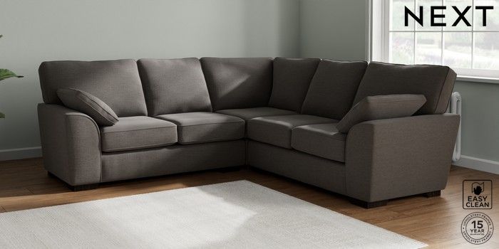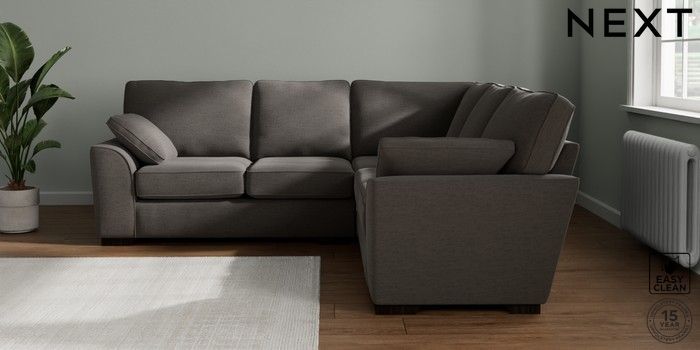 7.2.10 Buy Stamford Medium Corner Sofa - Universal Fine Chenille Easy Clean Dark Smoke Grey Large Square Angle - Dark from the Next UK online shop Click here to use our accessible website
