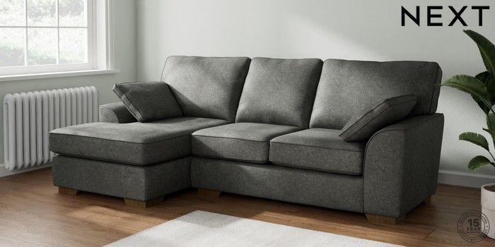 7.2.6 Buy Stamford Medium Sofa Chaise - Left Hand Plush Chenille Dark Grey Large Square Angle - Mid from the Next UK online shop Click here to use our accessible website