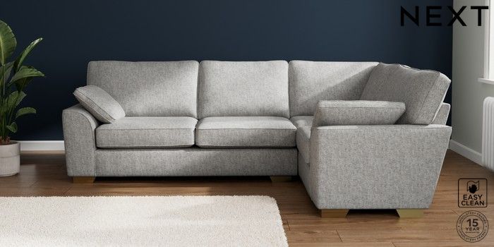 7.2.10 Buy Stamford Large Corner Sofa - Right Hand Chunky Boucle Easy Clean Light Grey Large Square Angle - Brushed Brass from the Next UK online shop Click here to use our accessible website