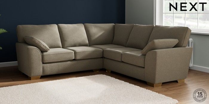 7.2.10 Buy Stamford Medium Corner Sofa - Universal Chunky Marl Light Olive Green Large Square Angle - Brushed Brass from the Next UK online shop Click here to use our accessible website