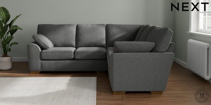 7.2.10 Buy Stamford Medium Corner Sofa - Universal Chunky Texture Dark Grey Large Square Angle - Brushed Brass from the Next UK online shop Click here to use our accessible website