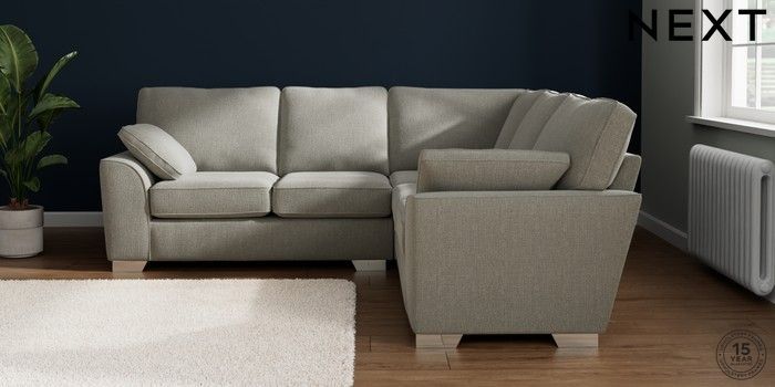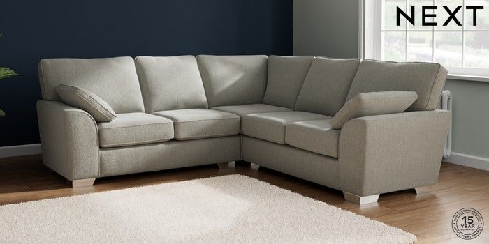 7.2.10 Buy Stamford Medium Corner Sofa - Universal Chunky Texture Dove Large Square Angle - Chrome Metal from the Next UK online shop Click here to use our accessible website