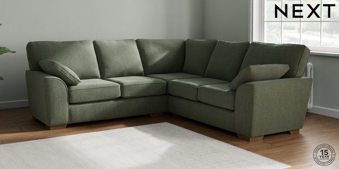7.2.10 Buy Stamford Medium Corner Sofa - Universal Chunky Texture Mid Forest Green Large Square Angle - Mid from the Next UK online shop Click here to use our accessible website