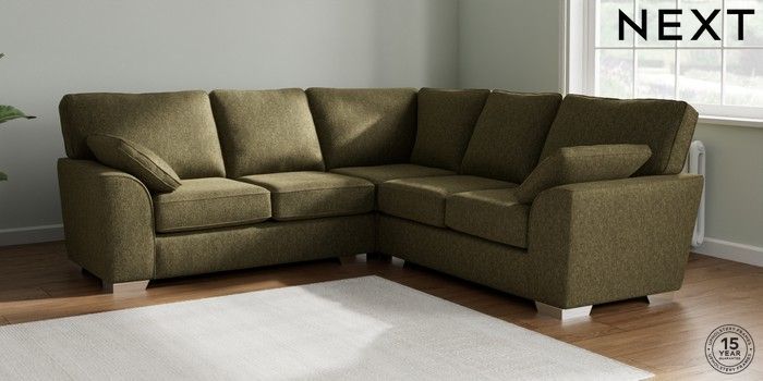 7.2.6 Buy Stamford Medium Corner Sofa - Universal Cotswold Chenille Dark Green Large Square Angle - Chrome Metal from the Next UK online shop Click here to use our accessible website