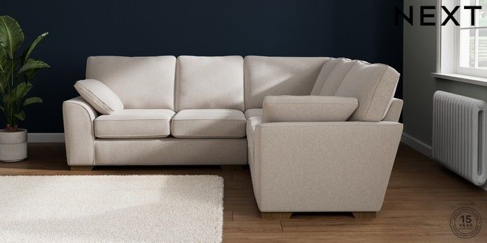 7.2.10 Buy Stamford Medium Corner Sofa - Universal Cotswold Chenille Oyster Large Square Angle - Mid from the Next UK online shop Click here to use our accessible website