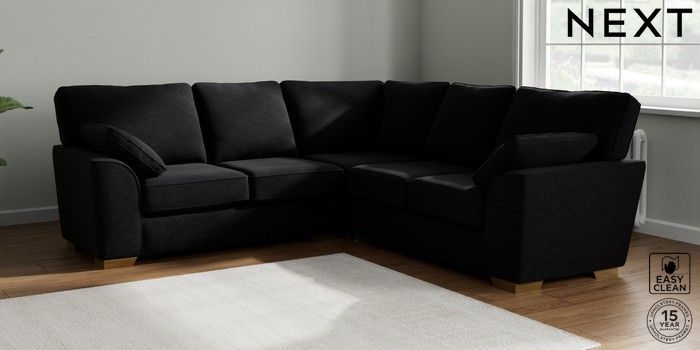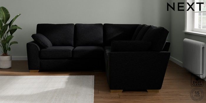 7.2.10 Buy Stamford Medium Corner Sofa - Universal Fine Chenille Easy Clean Black Large Square Angle - Brushed Brass from the Next UK online shop Click here to use our accessible website
