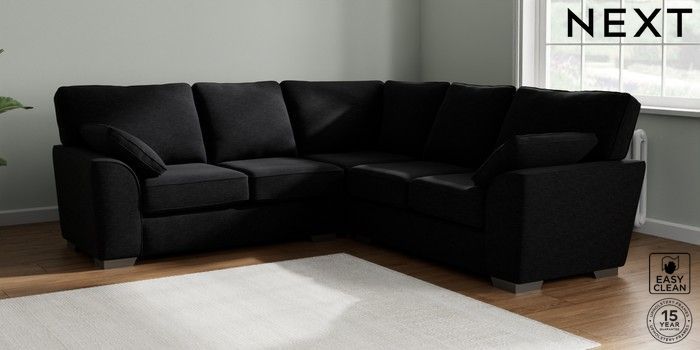 7.2.10 Buy Stamford Medium Corner Sofa - Universal Fine Chenille Easy Clean Black Large Square Angle - Gunmetal from the Next UK online shop Click here to use our accessible website