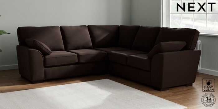7.2.10 Buy Stamford Medium Corner Sofa - Universal Fine Chenille Easy Clean Chocolate Brown Large Square Angle - Dark from the Next UK online shop Click here to use our accessible website