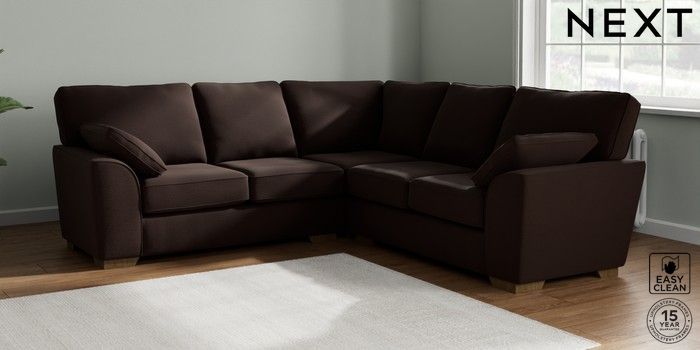 7.2.10 Buy Stamford Medium Corner Sofa - Universal Fine Chenille Easy Clean Chocolate Brown Large Square Angle - Mid from the Next UK online shop Click here to use our accessible website