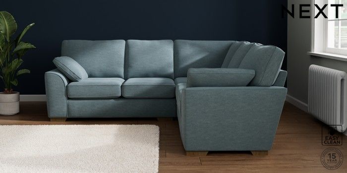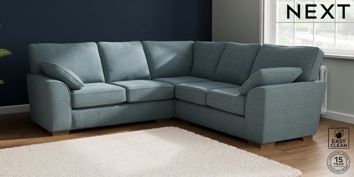 7.2.6 Buy Stamford Medium Corner Sofa - Universal Fine Chenille Easy Clean Mid Blue Large Square Angle - Mid from the Next UK online shop Click here to use our accessible website