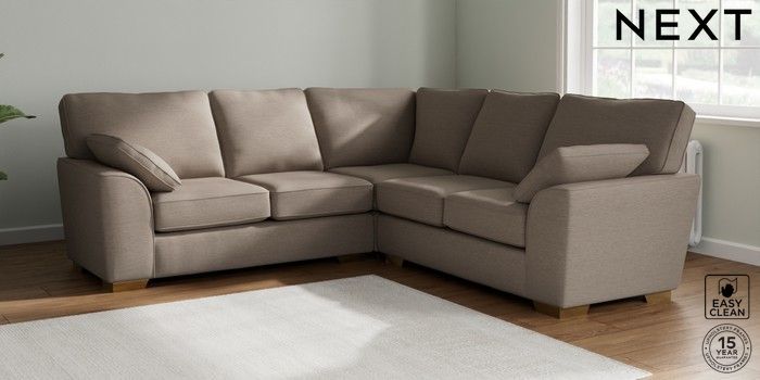 7.2.6 Buy Stamford Medium Corner Sofa - Universal Fine Chenille Easy Clean Mid Taupe Brown Large Square Angle - Brushed Brass from the Next UK online shop Click here to use our accessible website