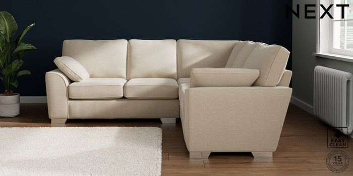 7.2.10 Buy Stamford Medium Corner Sofa - Universal Fine Chenille Easy Clean Oyster Large Square Angle - Chrome Metal from the Next UK online shop Click here to use our accessible website