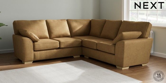 7.2.6 Buy Stamford Medium Corner Sofa - Universal Luxe Chenille Honey Yellow Large Square Angle - Light from the Next UK online shop Click here to use our accessible website