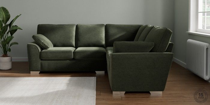 7.0.3 Buy Stamford Medium Corner Sofa - Universal Luxe Chenille Mid Green Large Square Angle - Chrome Metal from the Next UK online shop Click here to use our accessible website