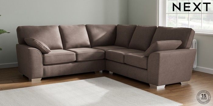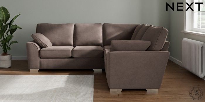 7.2.10 Buy Stamford Medium Corner Sofa - Universal Luxe Chenille Mink Brown Large Square Angle - Chrome Metal from the Next UK online shop Click here to use our accessible website