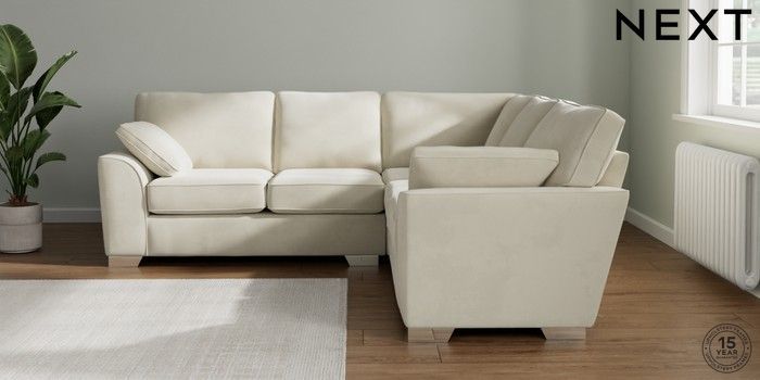 7.0.3 Buy Stamford Medium Corner Sofa - Universal Luxe Chenille Oyster Large Square Angle - Chrome Metal from the Next UK online shop Click here to use our accessible website