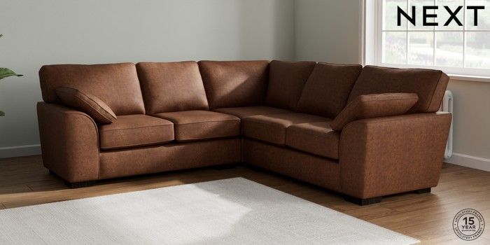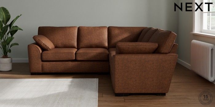 7.2.10 Buy Stamford Medium Corner Sofa - Universal Monza Faux Leather Easy Clean Chestnut Brown Large Square Angle - Dark from the Next UK online shop Click here to use our accessible website