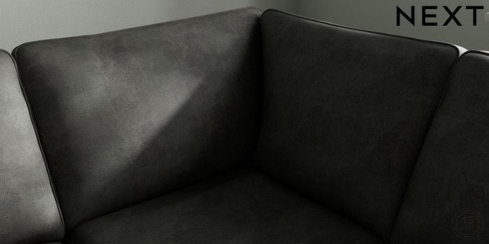 7.2.10 Buy Stamford Medium Corner Sofa - Universal Monza Faux Leather Easy Clean Dark Grey Large Square Angle - Brushed Brass from the Next UK online shop Click here to use our accessible website