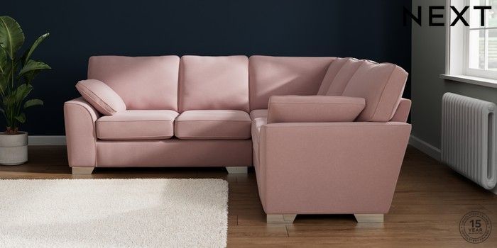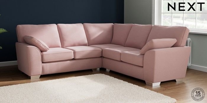 7.2.10 Buy Stamford Medium Corner Sofa - Universal Natural Mix Light Rose Pink Large Square Angle - Chrome Metal from the Next UK online shop Click here to use our accessible website