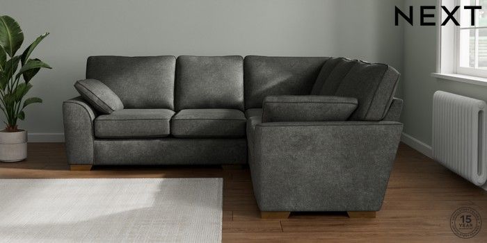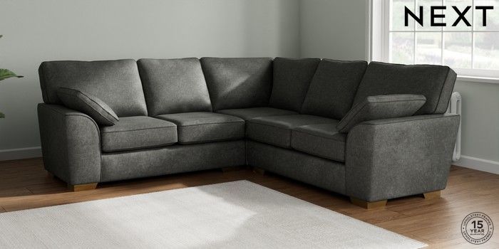 7.2.10 Buy Stamford Medium Corner Sofa - Universal Plush Chenille Dark Grey Large Square Angle - Brushed Brass from the Next UK online shop Click here to use our accessible website
