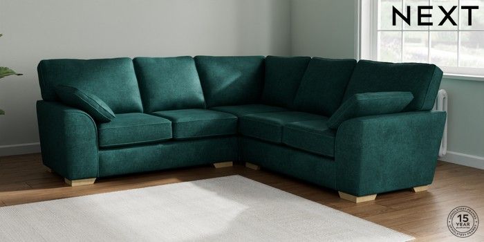7.2.10 Buy Stamford Medium Corner Sofa - Universal Plush Chenille Dark Teal Green Large Square Angle - Light from the Next UK online shop Click here to use our accessible website
