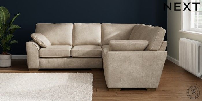 7.2.10 Buy Stamford Medium Corner Sofa - Universal Plush Chenille Light Natural Large Square Angle - Mid from the Next UK online shop Click here to use our accessible website