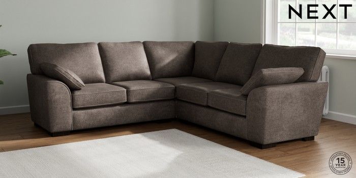 7.2.10 Buy Stamford Medium Corner Sofa - Universal Plush Chenille Mink Brown Large Square Angle - Dark from the Next UK online shop Click here to use our accessible website