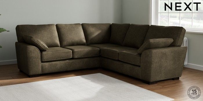 7.2.10 Buy Stamford Medium Corner Sofa - Universal Plush Chenille Moss Green Large Square Angle - Dark from the Next UK online shop Click here to use our accessible website