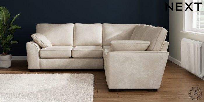 7.2.10 Buy Stamford Medium Corner Sofa - Universal Plush Chenille Oyster Large Square Angle - Dark from the Next UK online shop Click here to use our accessible website