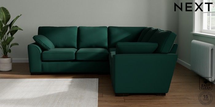 7.2.10 Buy Stamford Medium Corner Sofa - Universal Plush Velvet Easy Clean Bottle Green Large Square Angle - Dark from the Next UK online shop Click here to use our accessible website