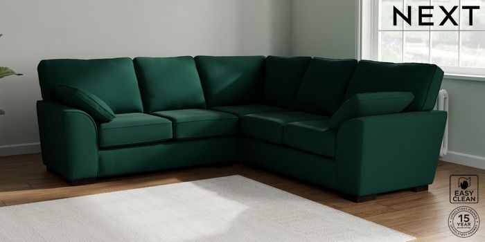 6.12.1 Buy Stamford Medium Corner Sofa - Universal Plush Velvet Easy Clean Bottle Green Large Square Angle - Dark from the Next UK online shop Click here to use our accessible website