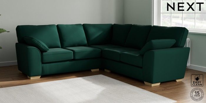 6.12.1 Buy Stamford Medium Corner Sofa - Universal Plush Velvet Easy Clean Bottle Green Large Square Angle - Light from the Next UK online shop Click here to use our accessible website