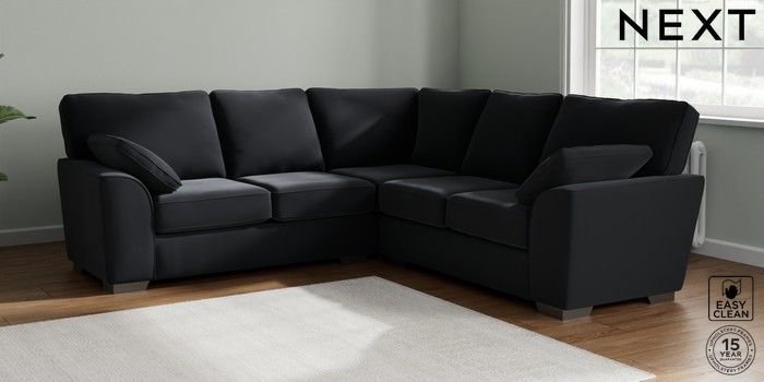 7.2.10 Buy Stamford Medium Corner Sofa - Universal Plush Velvet Easy Clean Charcoal Grey Large Square Angle - Gunmetal from the Next UK online shop Click here to use our accessible website