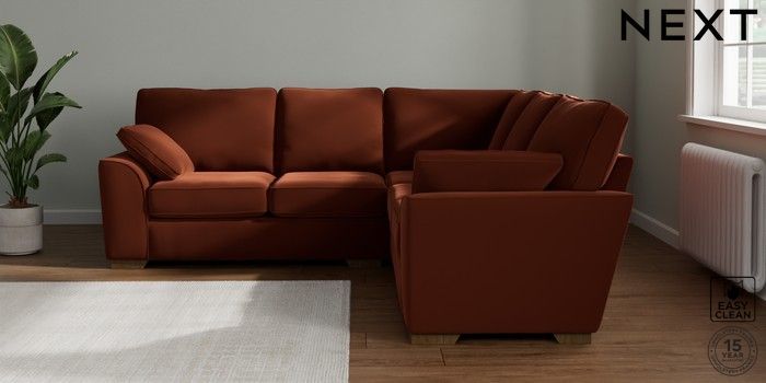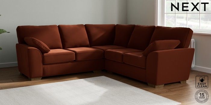 7.2.10 Buy Stamford Medium Corner Sofa - Universal Plush Velvet Easy Clean Ginger Orange Large Square Angle - Mid from the Next UK online shop Click here to use our accessible website